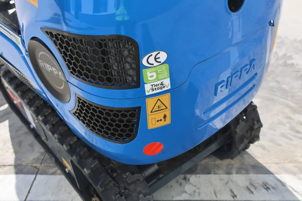 The Rippa R06 mini excavator is compact, agile, and offers precise control; it features a Kubota Z482 engine with an 8.2kW water-cooled motor; brand-name non-slip foot pads; an adjustable seat with a seatbelt and removable headrest; and powerful headlights for safe night work.